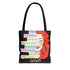 This Tote Bag is 100% polyester and features boxed corners for extra space. The bag comes with black cotton handles and black lining, giving it a sleek look. Please note that the size may have a 0.75" (1.9 cm) tolerance.
